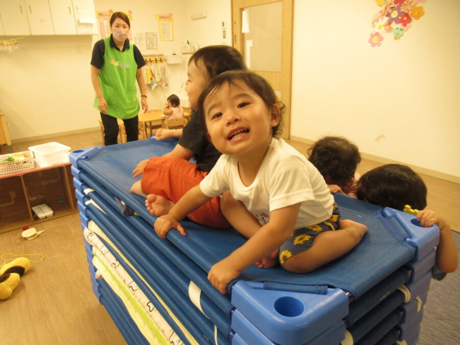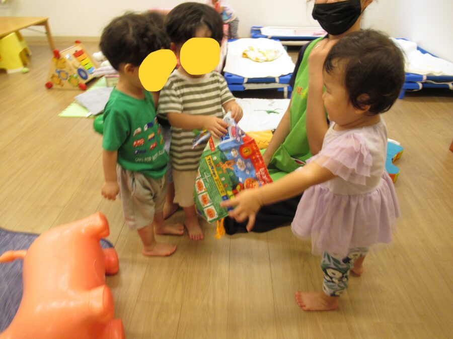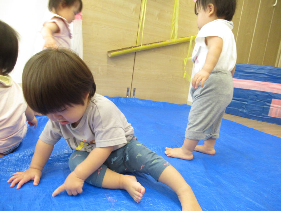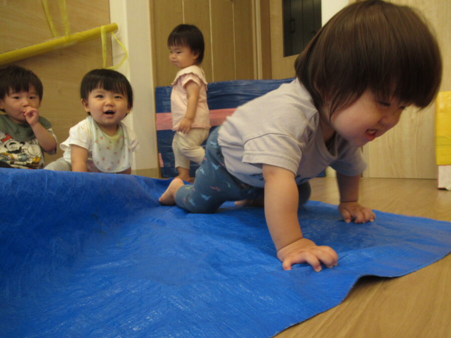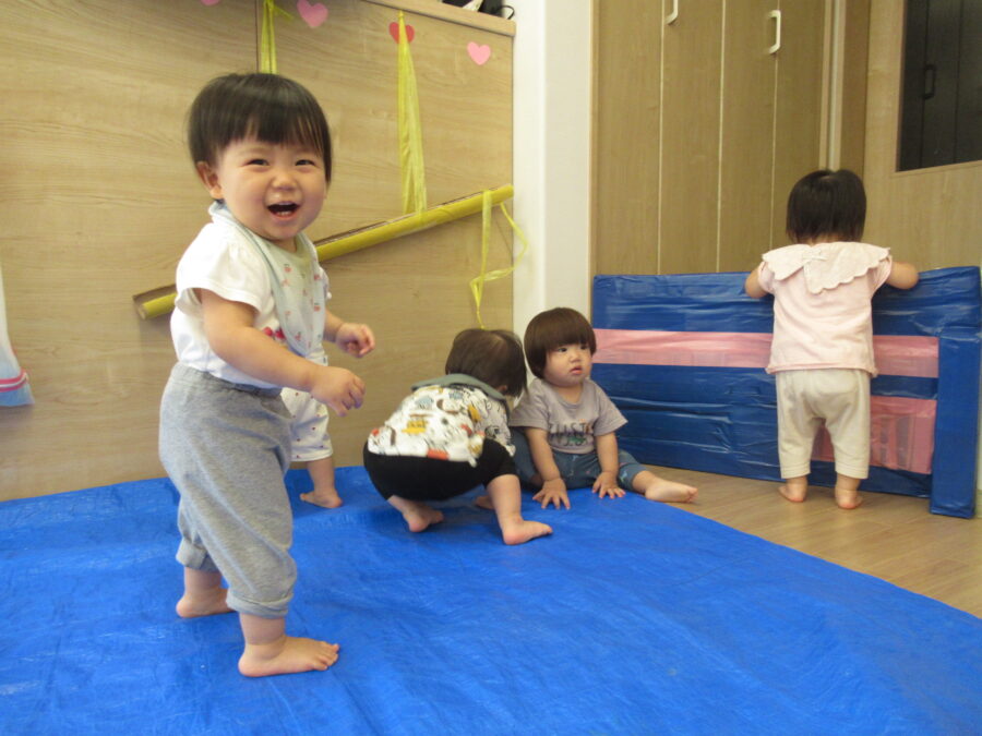 ひよこ組さんは歩行や四つ這いが活発で移動そのものも楽しんだり、うさぎ組の玩具で遊び込む姿が見られましたよ。