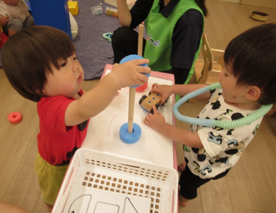 雨天の今日は、ひよこ組・うさぎ組と合同で好きなお部屋で好きな玩具で遊びました😊