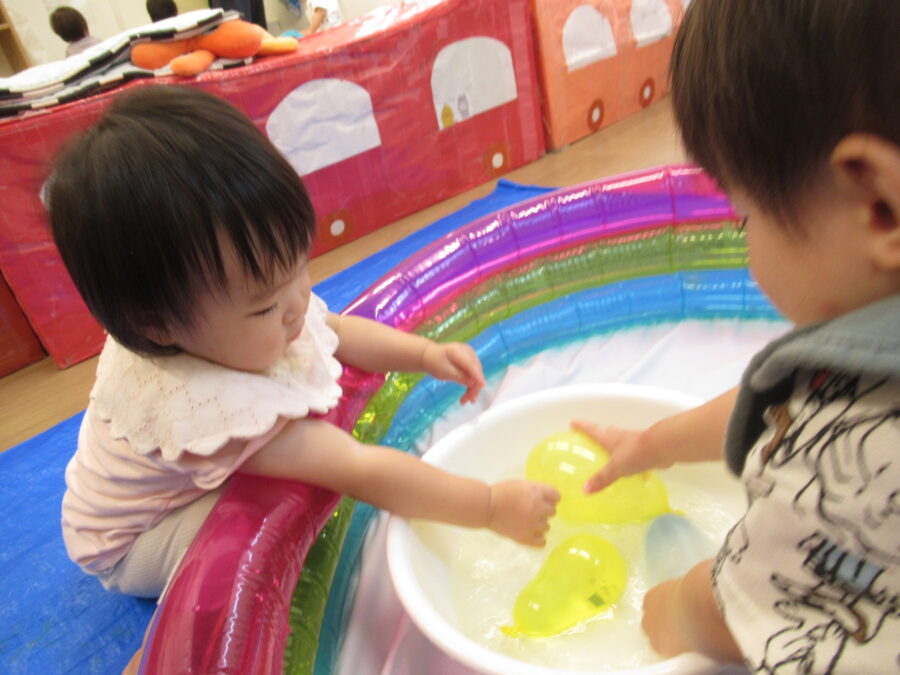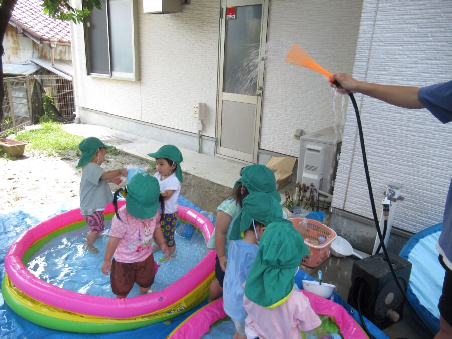 先生が沢山水風船を作ってくれたよ! 水風船で遊んでたら雨だー![]()