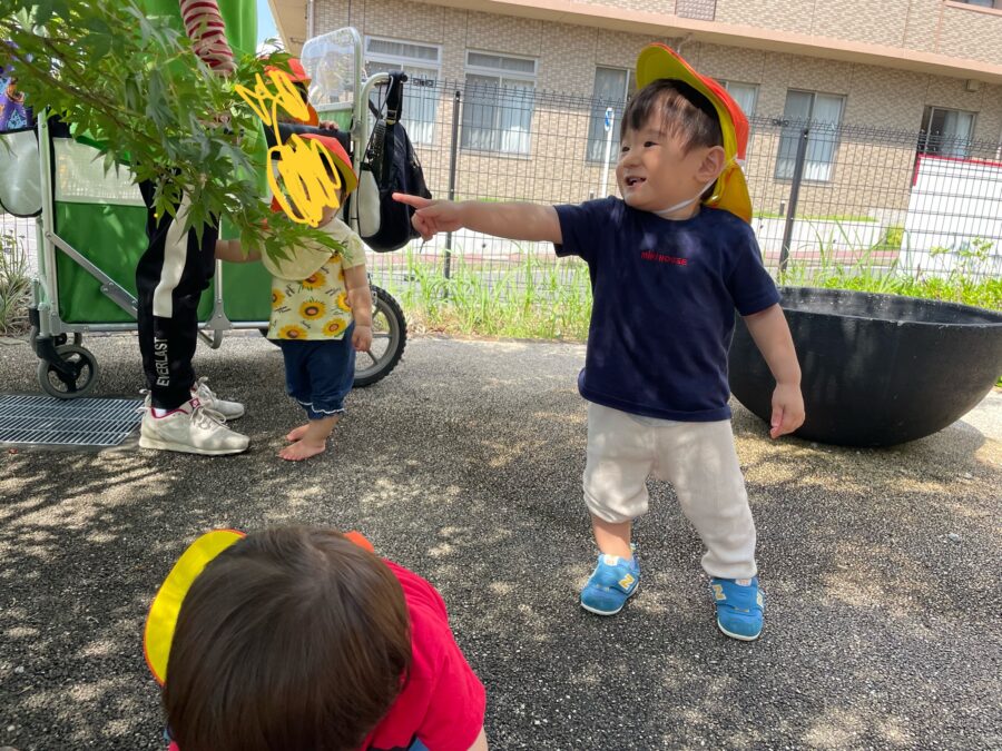 葉っぱの向こうに見える保育園に大興奮の子も☺️
