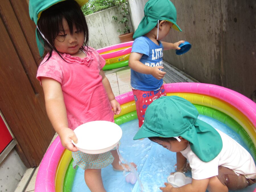 ダイナミックな水遊びはお休みにしました。