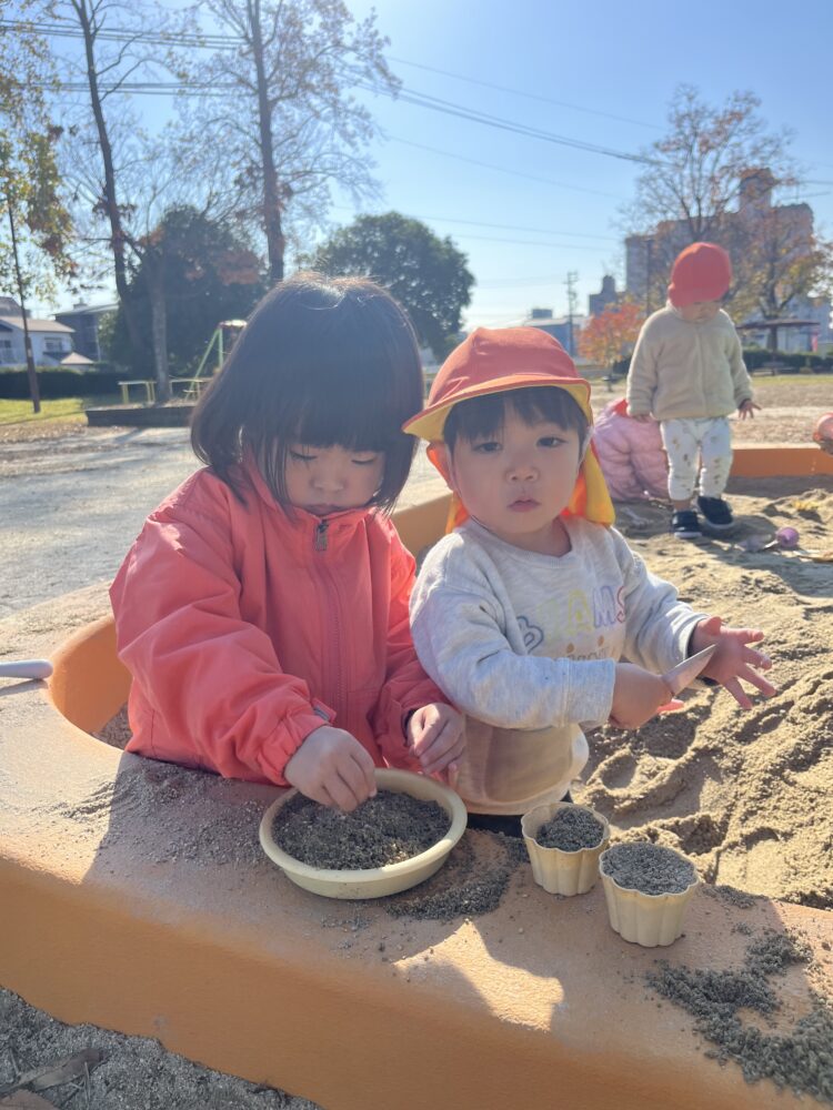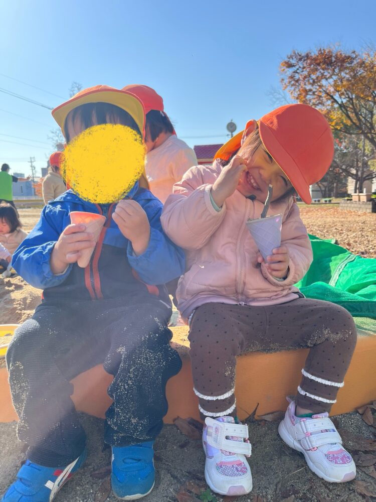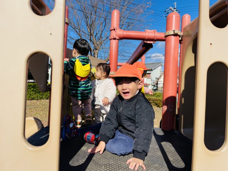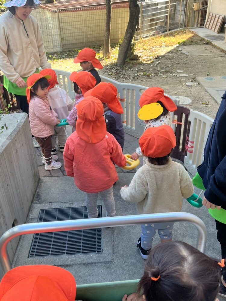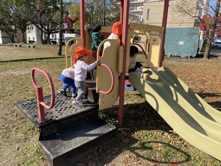公園では、寒さに負けず公園の中を走って元気に遊んだうさぎ組さん🍁