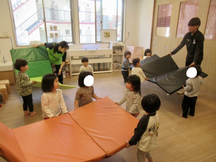 マットを見て大興奮な子どもたち😊先生のお話もしっかり聞けました!