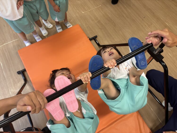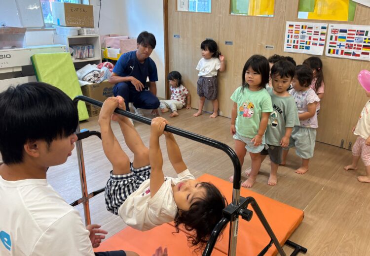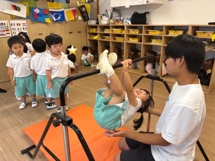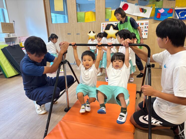 今日の体操の時間は、鉄棒をしました。上手にぶら下がって楽しそうだったね🎵