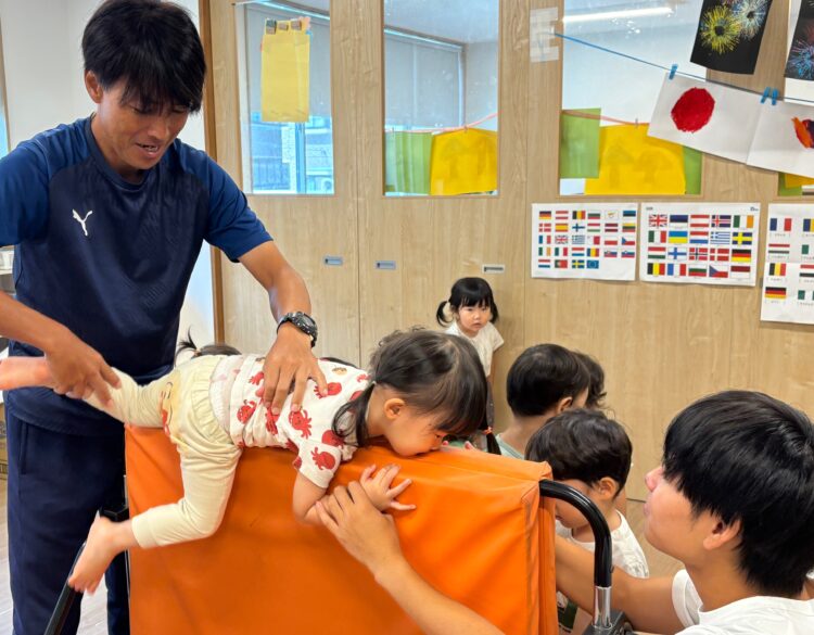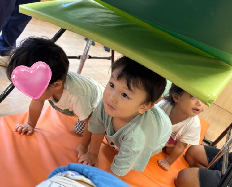 鉄棒の上にマットをかけて、「よいしょ…」と乗っかったりもしました😆