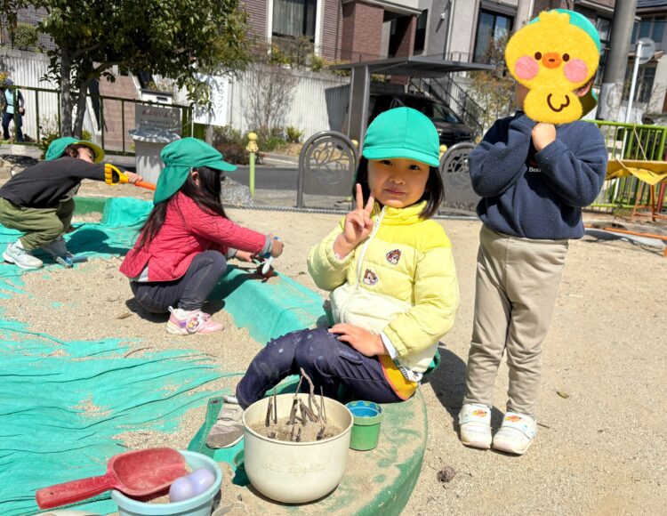 お砂場でもケーキ🧁を作り、ごっこ遊びを楽しんでいました🙌