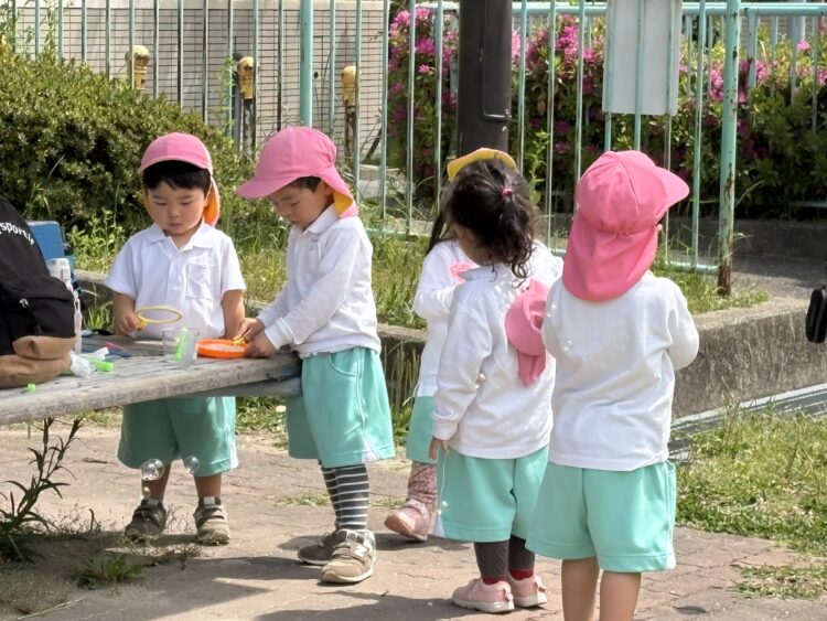 シャボン玉、みんなでやって、沢山できて綺麗だったね😊