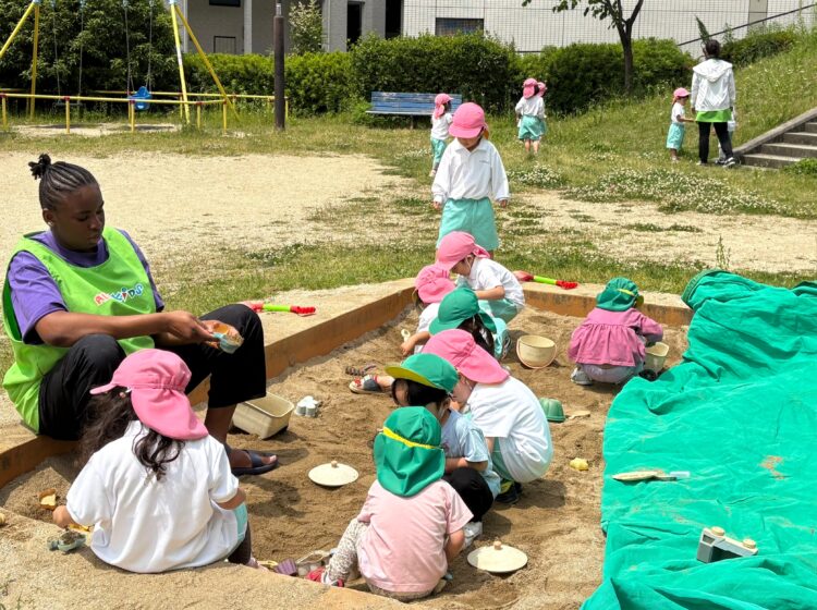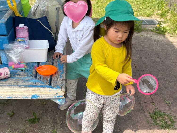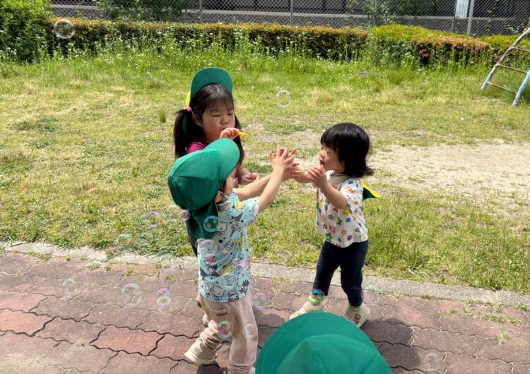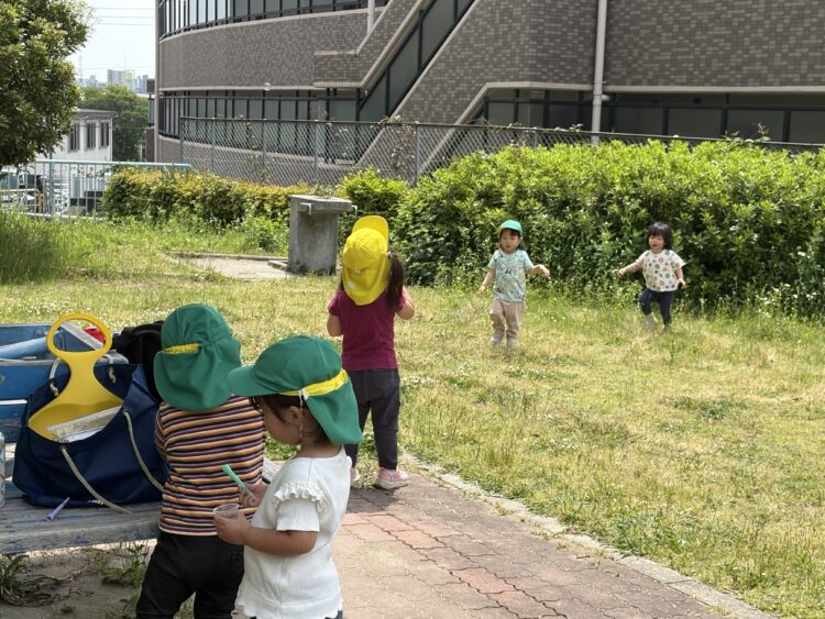 シャボン玉をしたり、砂遊びをしたり、お花や虫をつまえたり、元気に遊ぶことができました🙌