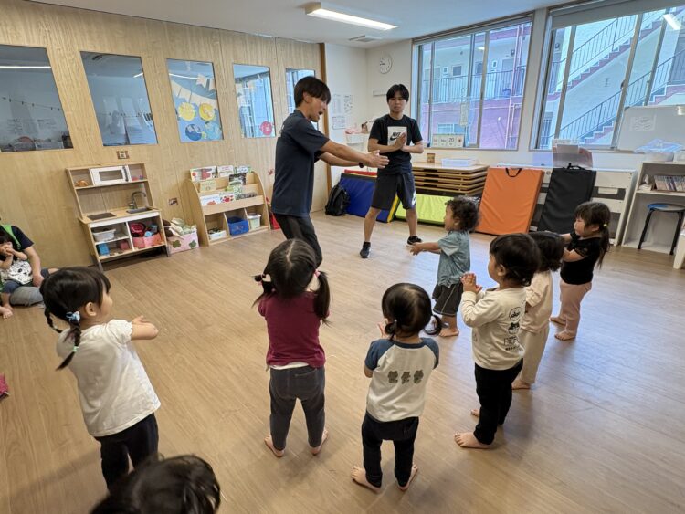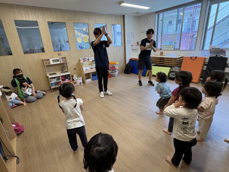 体操教室もありました。みんな元気に、動物に変身したり、転がったりして楽しみました😆