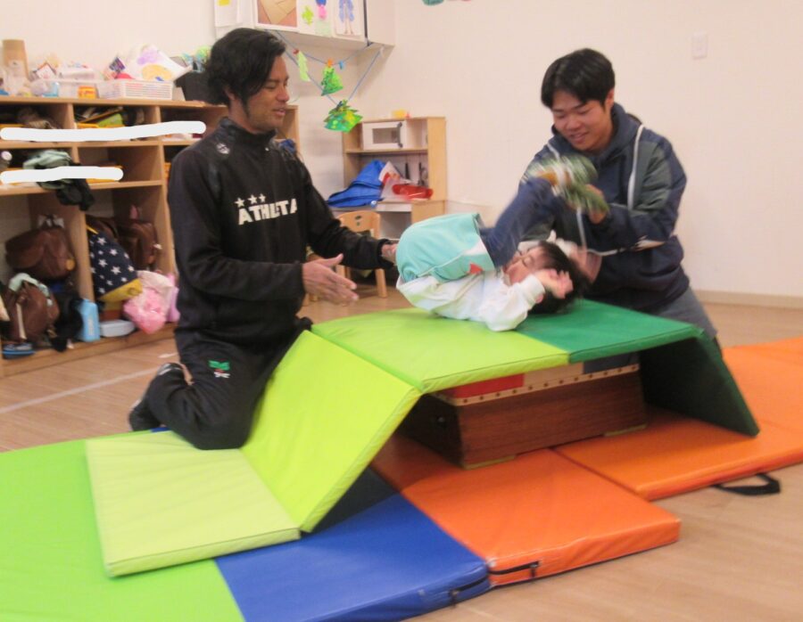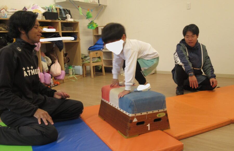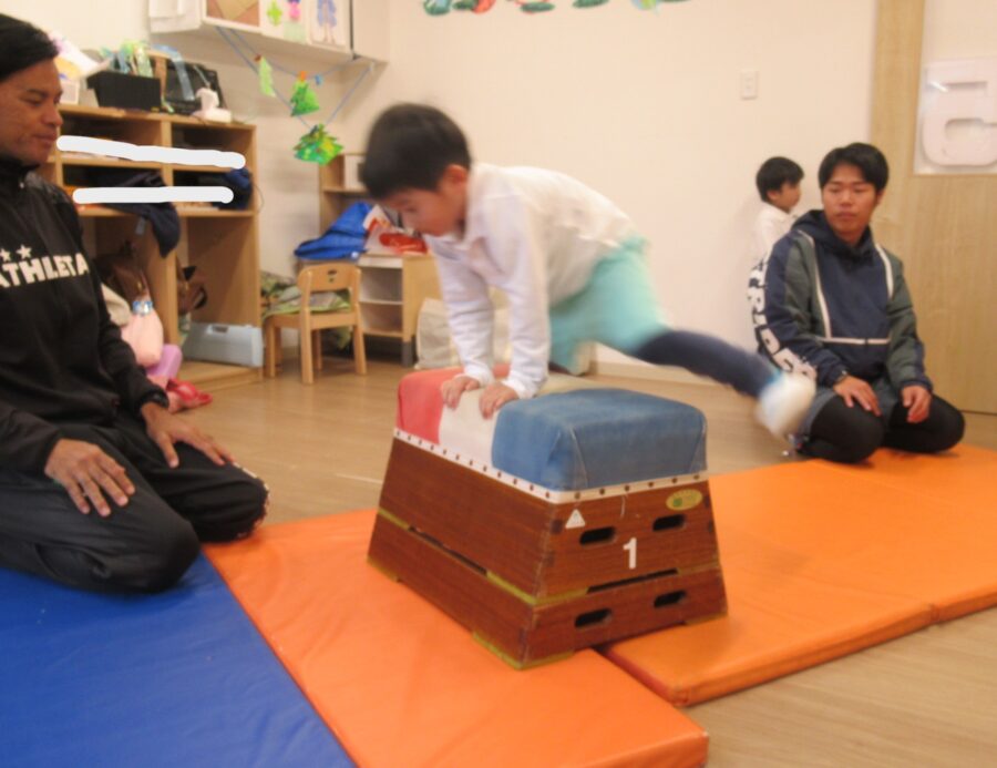 怖がらずに台の上で前転することも