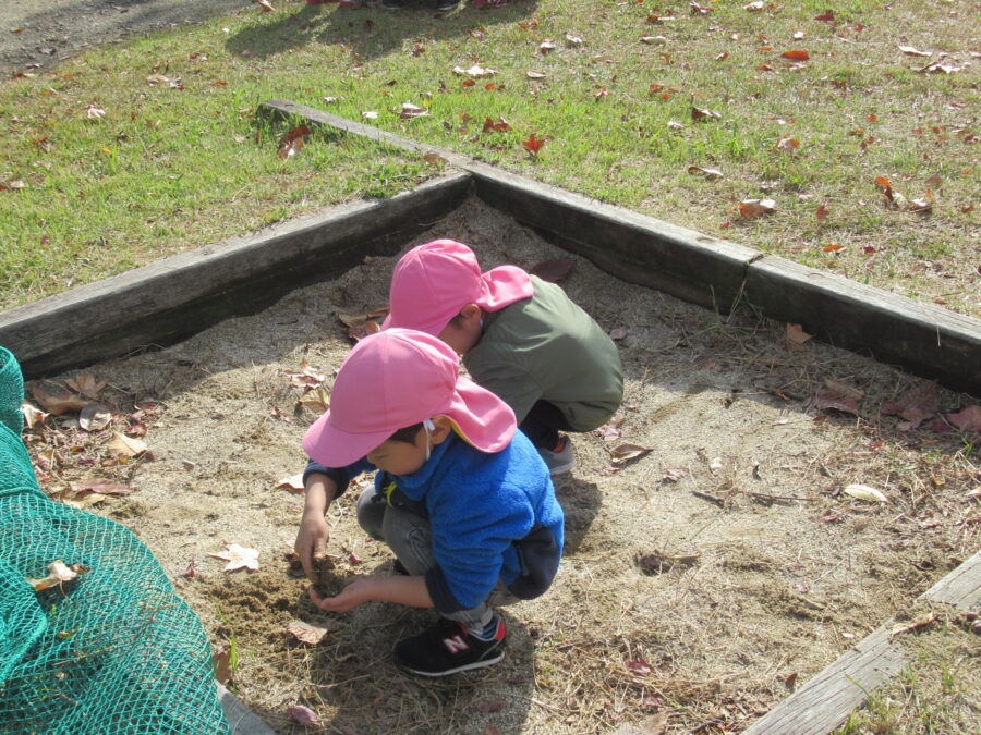 お砂場で作った団子も、ご飯にしてあげましょう![]()