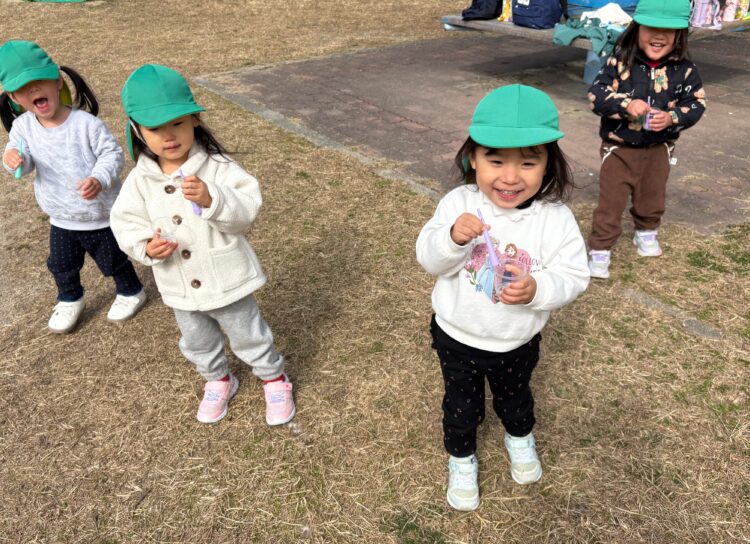 公園では、みんなの好きなシャボン玉🫧をしました。