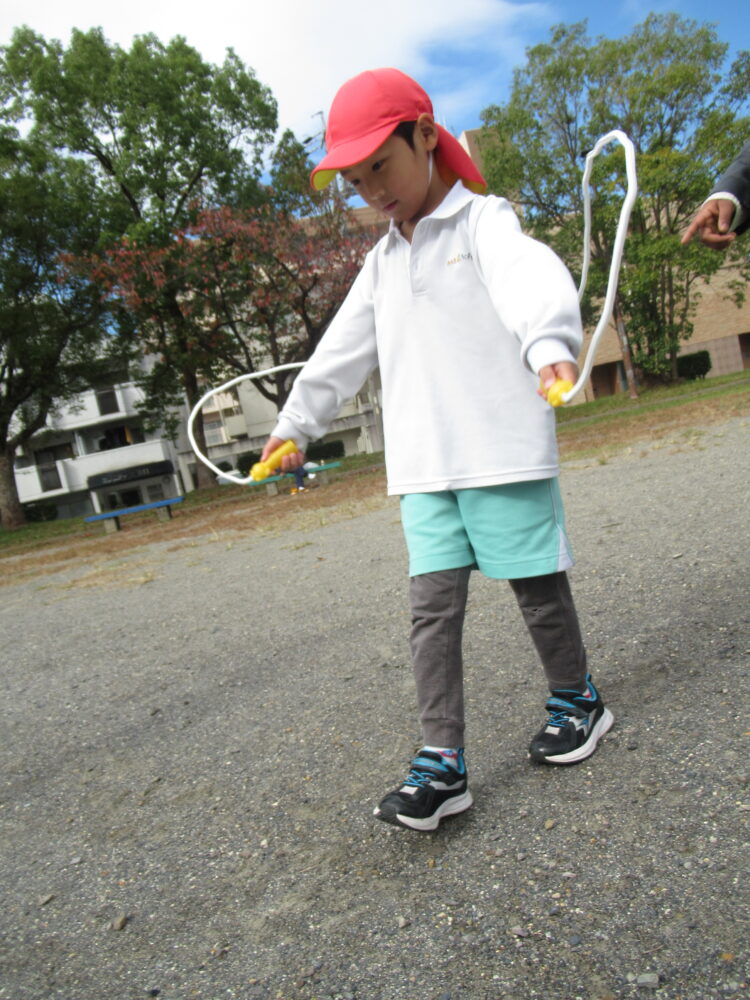 縄を前に回して歩きながら跨ぐ、という動きを教えてもらいました✨