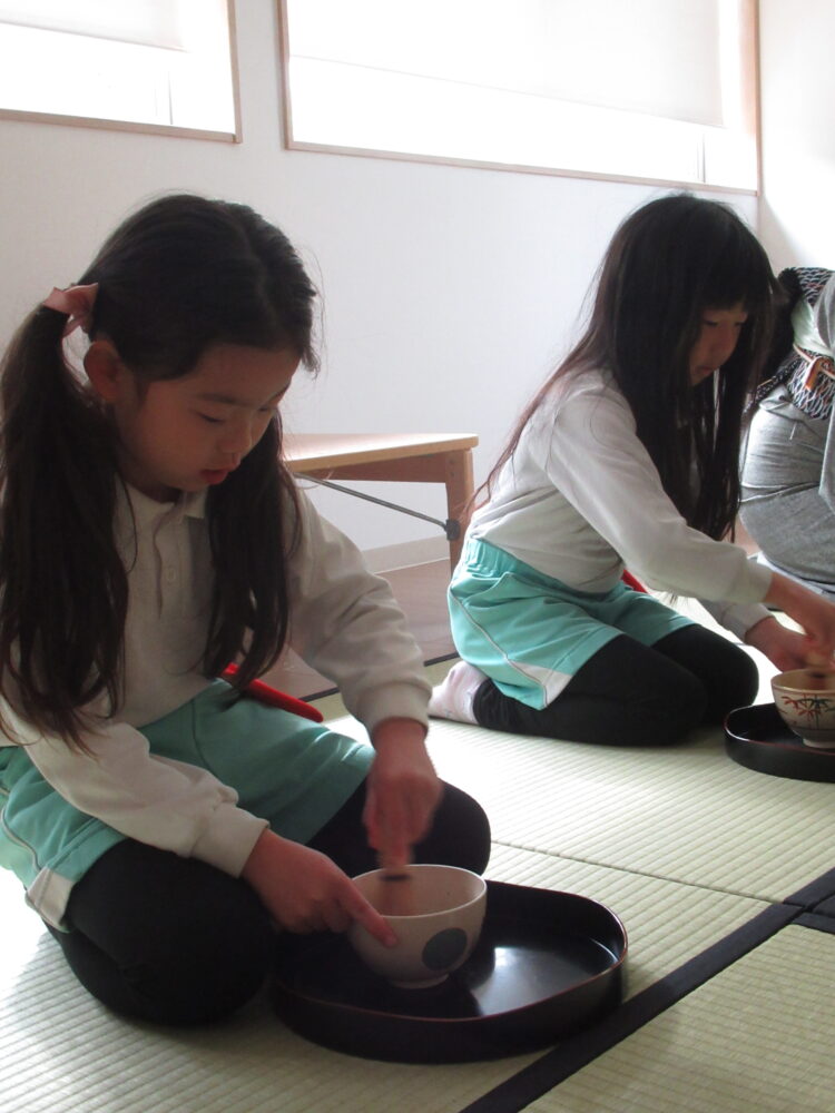 真剣にお茶をたて