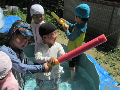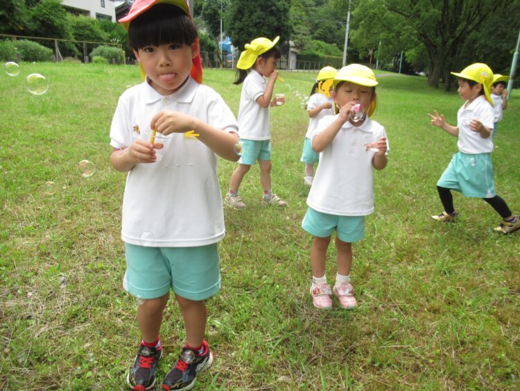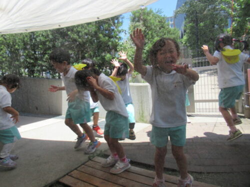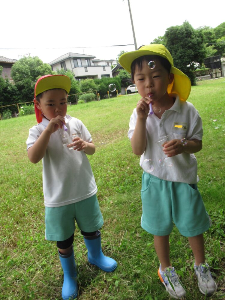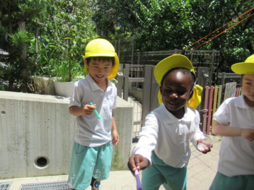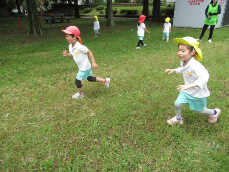 気温が高いので短い時間だけ園庭で遊びました![]()