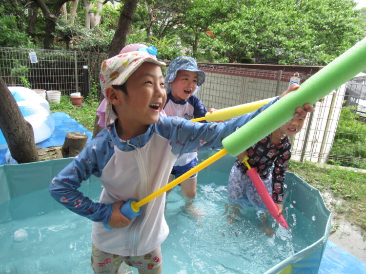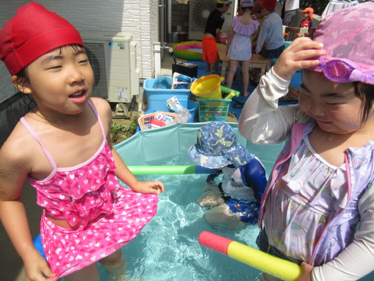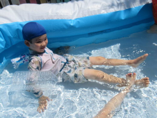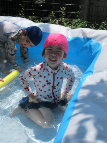 プールの中に座ると「つめたーい💓」とにこにこ☺