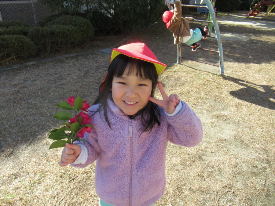 きれいなお花とハイポーズ♪いい笑顔だね✨