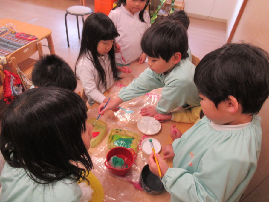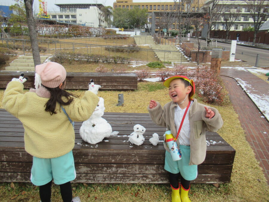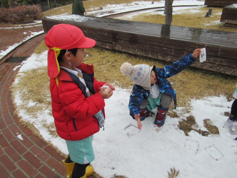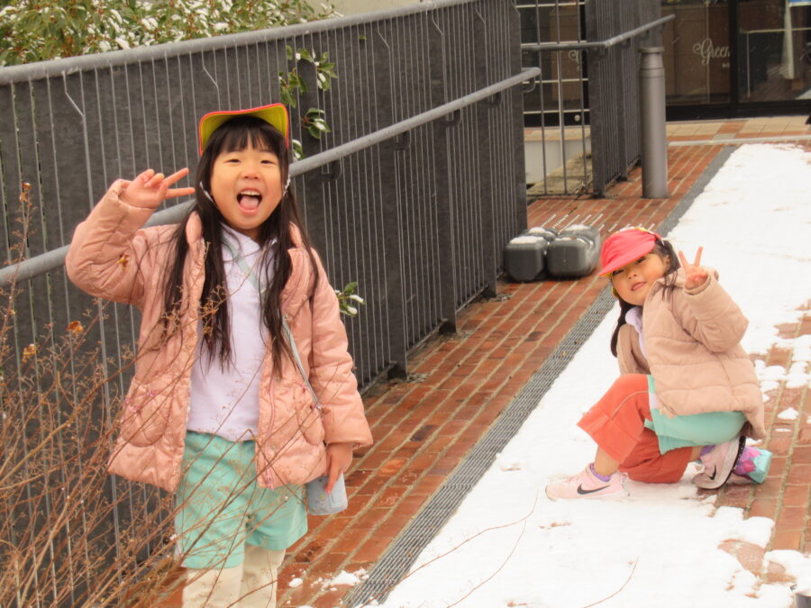 雪をそれぞれ少しずつ持ち帰り、絵の具で色を付けて遊んでみたよ☺