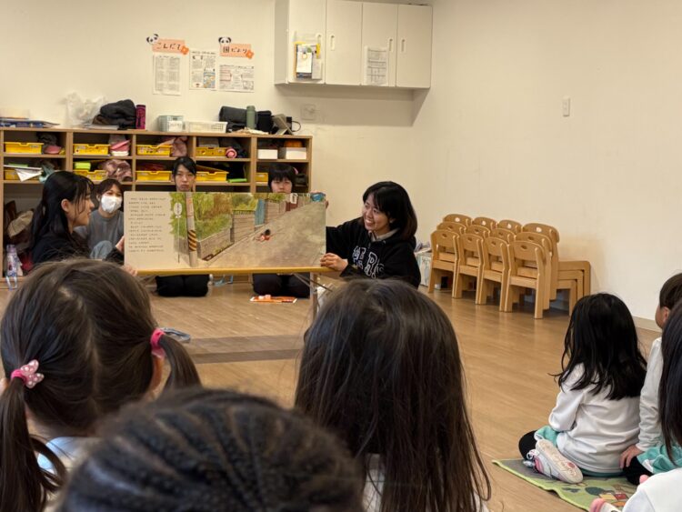 名城大の児童文化研究会のお姉さんたちが遊びに来て、いろいろな絵本を読んでくれました📚