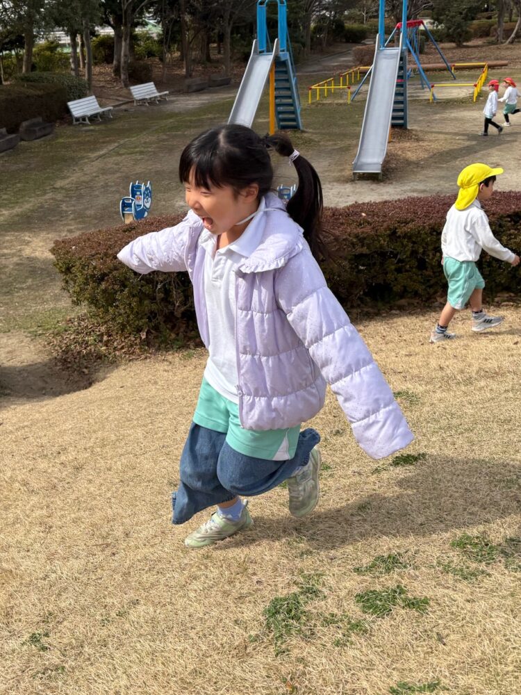 鬼ごっこで元気いっぱい走るお友だち💨