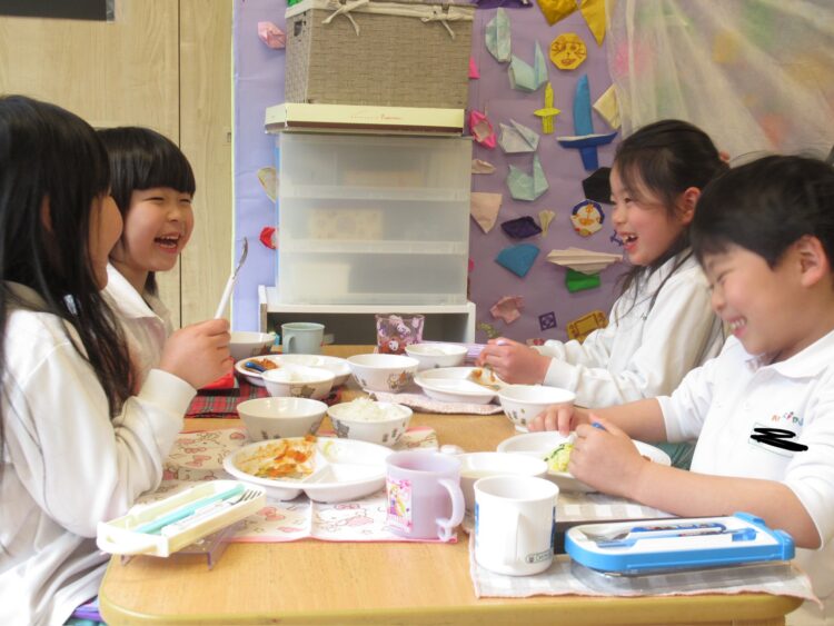 「せーのであけよう」と見せ合いっこをする子たちも🍱