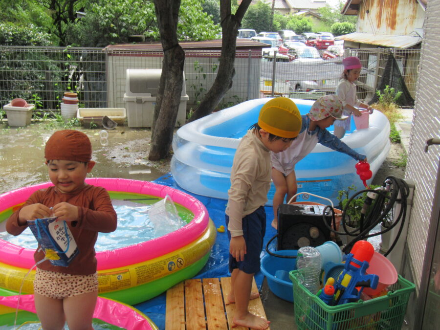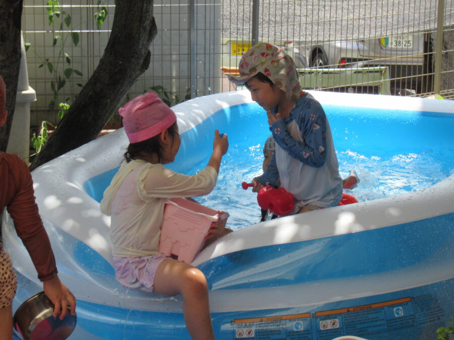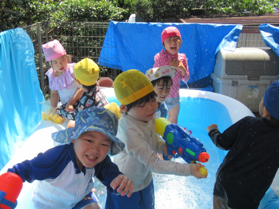 今日は良いお天気♪みんなで、元気よくプールで水遊びを楽しみました☺