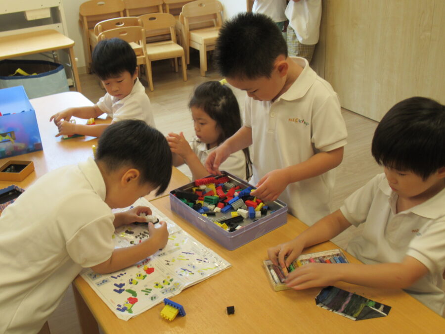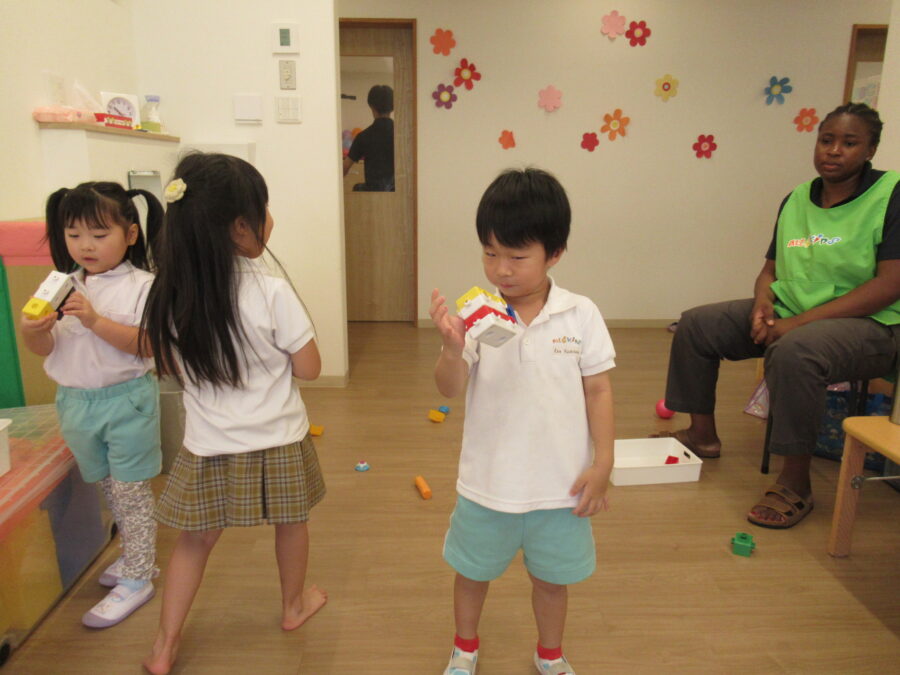 沢山活動した後は、お部屋でゆっくりブロック遊びや、マグネットの玩具で遊びました。