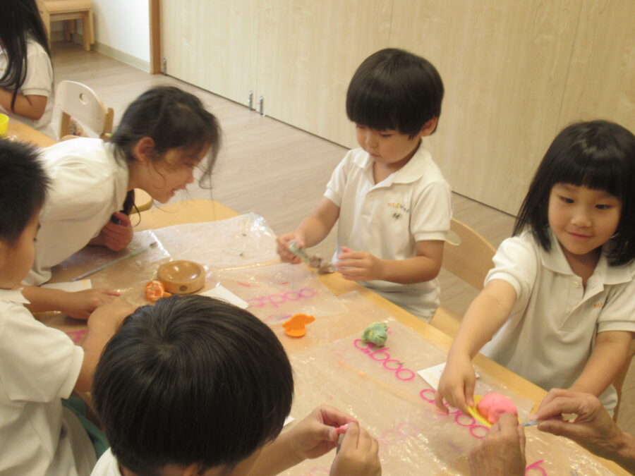 いろんな形にしたり、カップに入れたりして遊んでいました☺