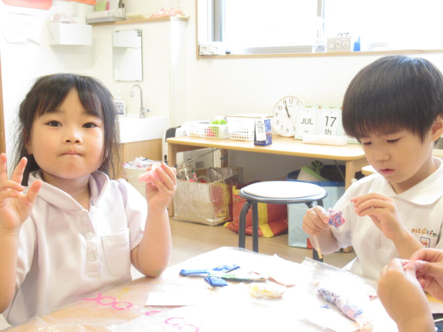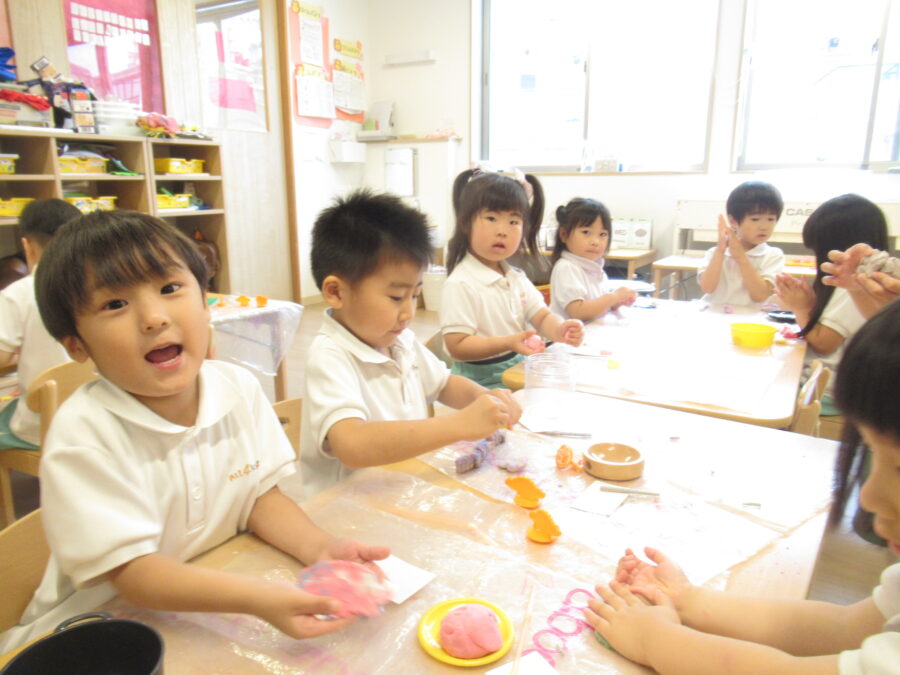 今日は、午前中お天気が悪かったので、お部屋でふわふわ紙粘土を楽しみました(^^♪