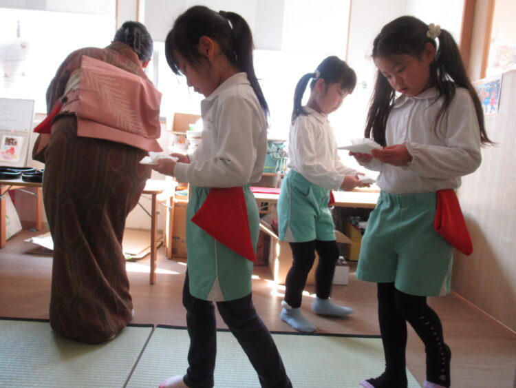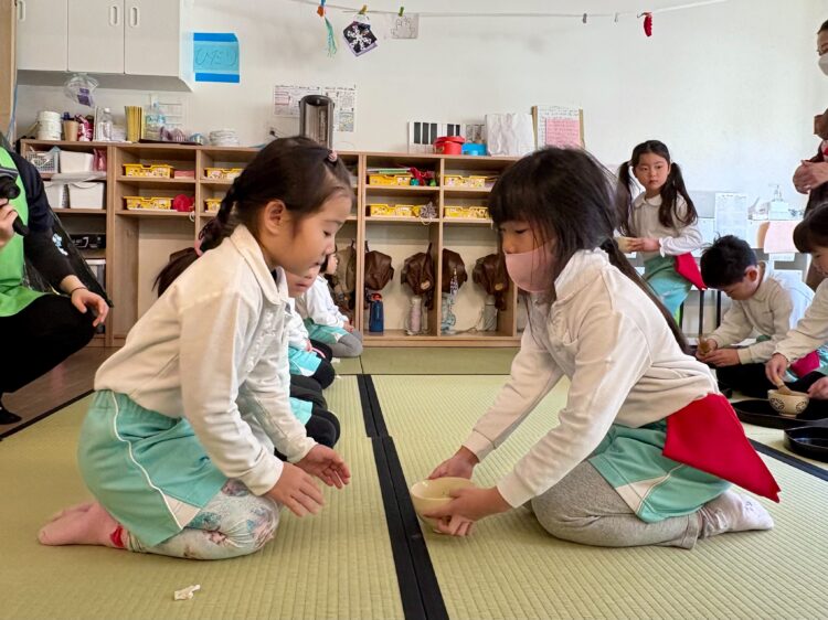ぞう組のお友だちが点てたお茶をいただきます🍵