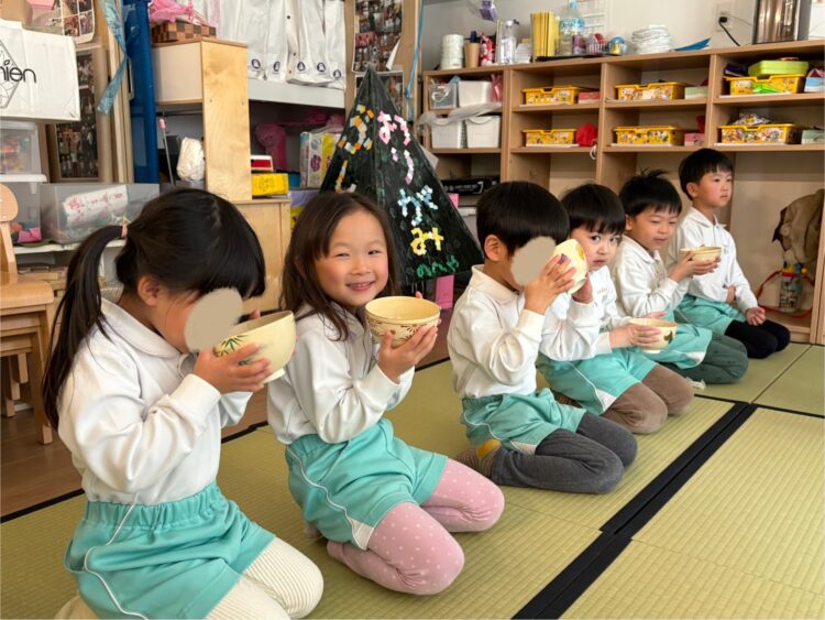 無理して飲まなくてもいいよとお茶の先生からありましたが、ほとんどのお友だちが飲み干していて、ぞう組さんも嬉しそうでしたよ✨