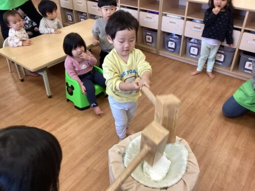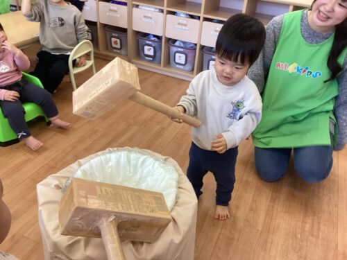 お楽しみ会の内容は…お餅つき(ごっこ)大会〜✨