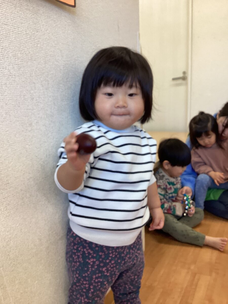 ボールを持って歩いて満足する子や
