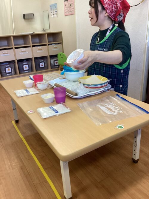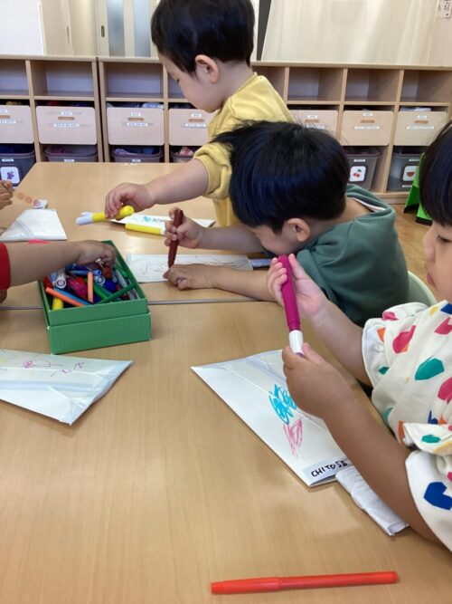 今日はきりん組さんとひよこ組さんは制作、