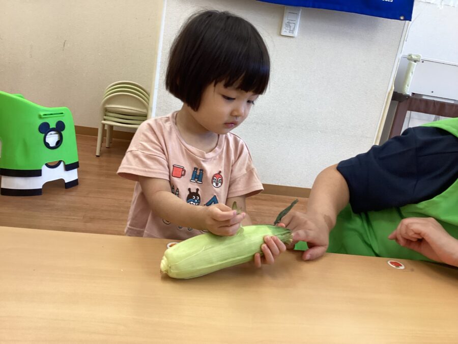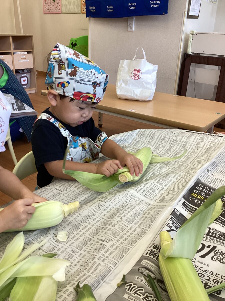 とうもろこしの皮を剥きます。
