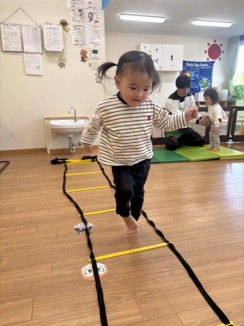ロープを踏まないように左右にジャンプをして進んでいくことに挑戦しました❗️