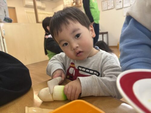 大根を上手に包丁で切っていました✨