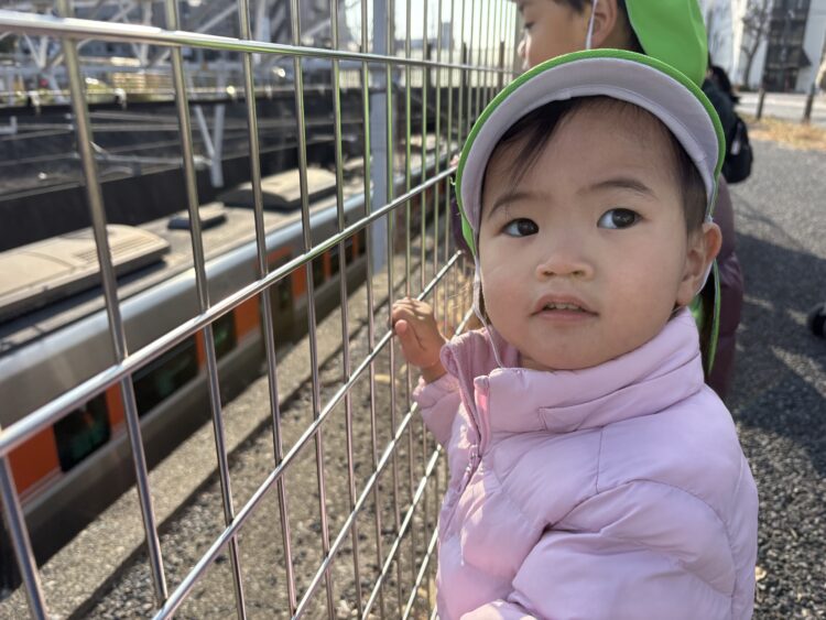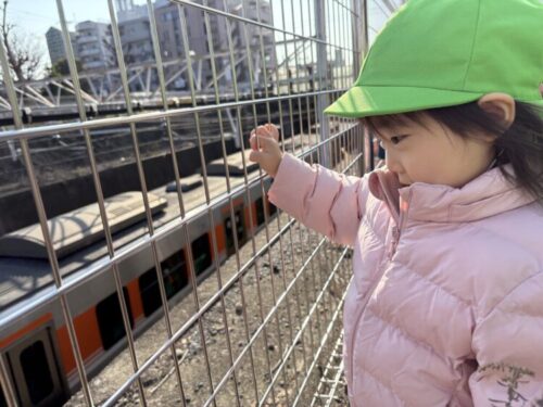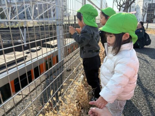 電車が右から左かどちらから来るのか予想をしたり、電車に手を振ったりしていた子どもたちでした😊