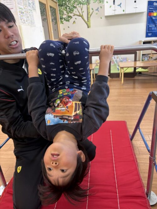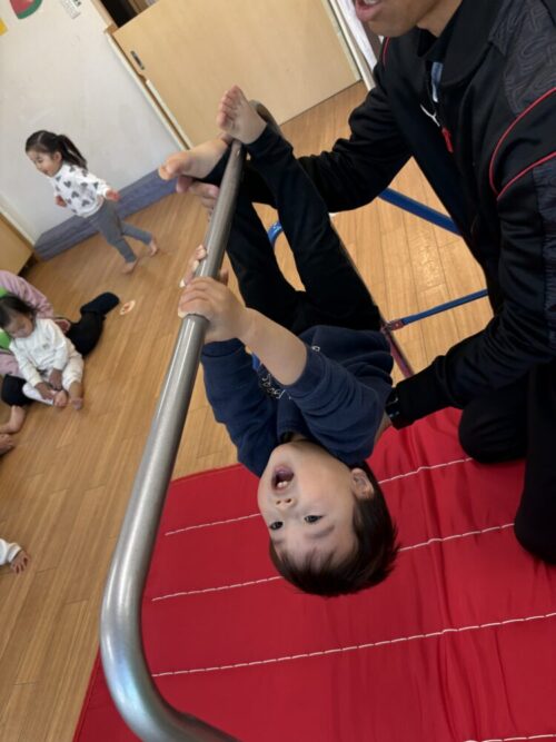 今日は体操教室があり、鉄棒に取り組みましたよ!