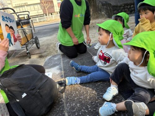 バスやトラック、クレーン車、パトカー、タクシーなどたくさんの働く車を見ることができて子どもたちも嬉しそうに眺めていました!