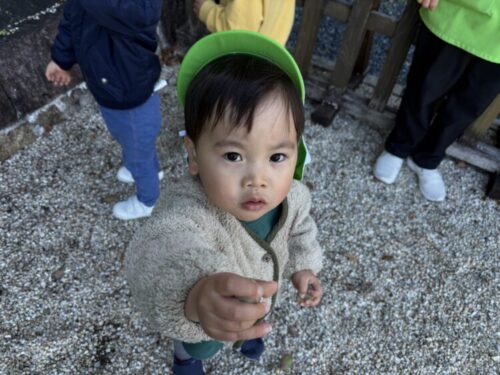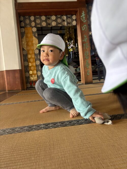 今日は、ぶどう組さんはボランティア活動でお寺の掃除に行きました!