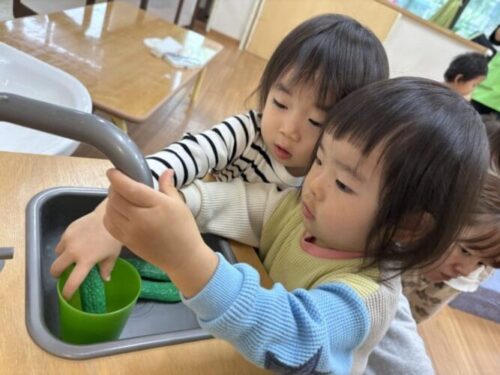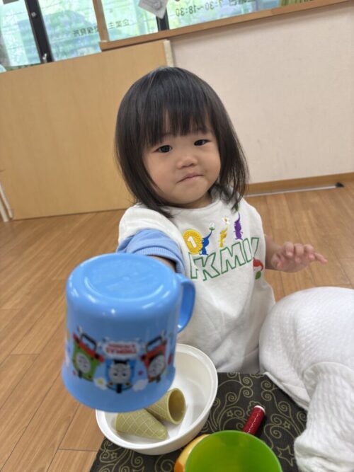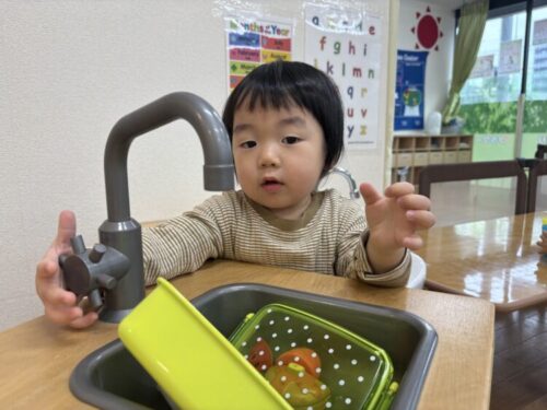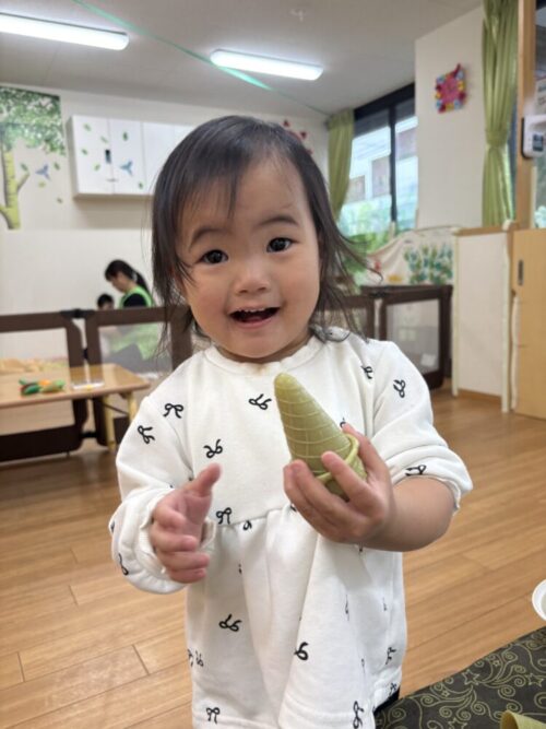 もも組さんとみかん組さんはリクエストがあった野菜(野菜のおもちゃ)で遊びましたよ!