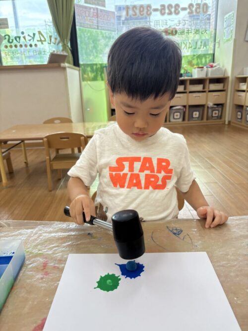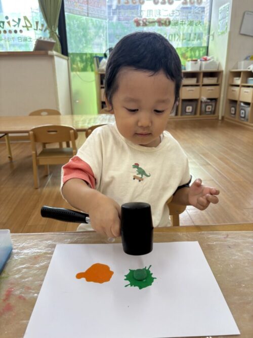 石を先生の手にのせて、下に落とすと大喜びでした🤣