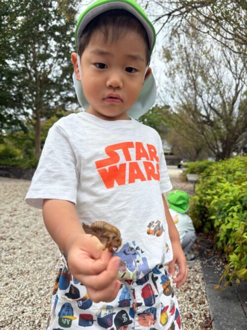 お尻の方がしましまになっていて「ハチみたいだね!」と言っていました!