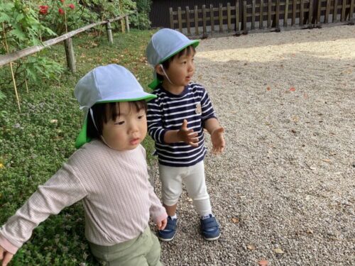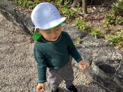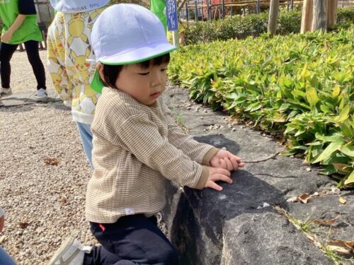 徳川園に着いたら、両手いっぱいに小石を持ち、ジャラジャラと落とす遊びを楽しんだり、虫探しに夢中になる姿が見られました🐜