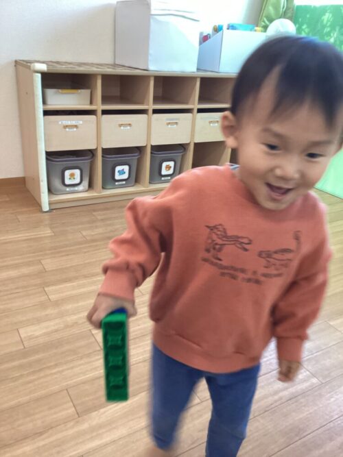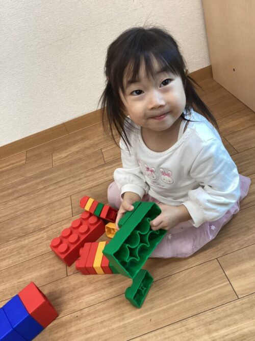 ブロックを積み上げたり、パンに見立ててパン屋さんごっこをしたりと、思い思いに遊ぶ姿が見られました😊
