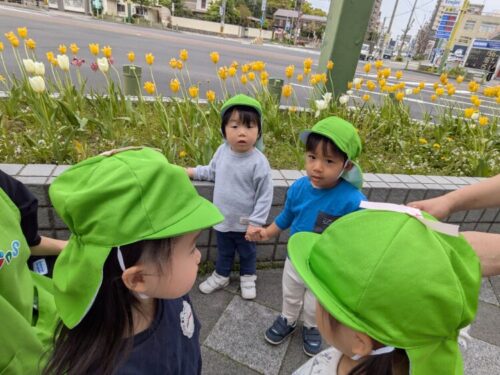 新しいお友だちも、保育士と手をつないで歩きましたよ!