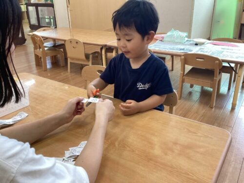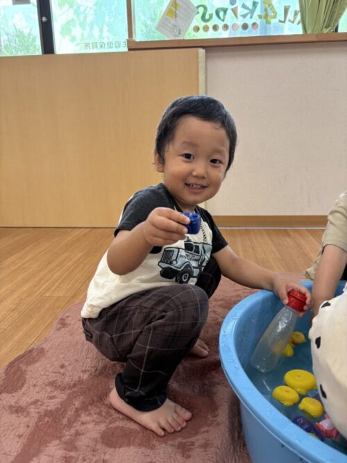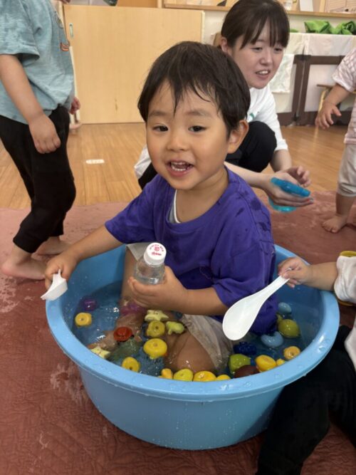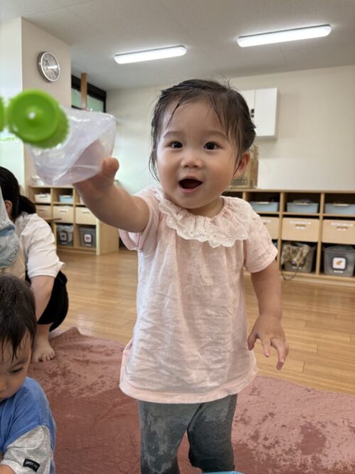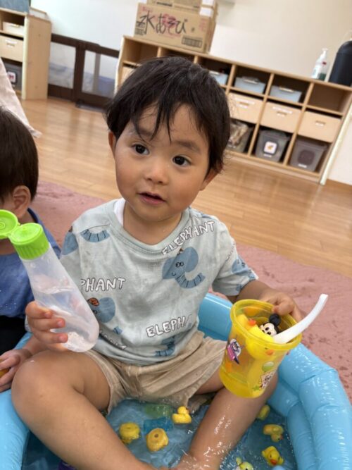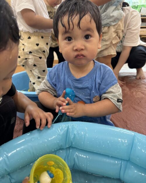 顔が濡れることを嫌がっていたお友だちも慣れて、今では楽しんでいます♪