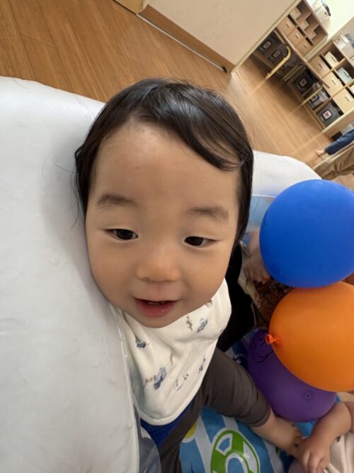体操教室が終わってからは、風船と水の入っていないプールで遊びました!