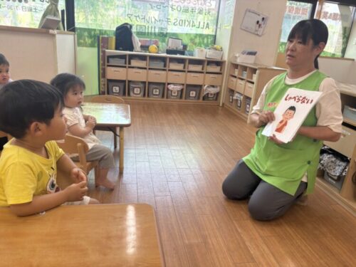 お外は暑かったので、お部屋に戻ってきてお話を聞きました!